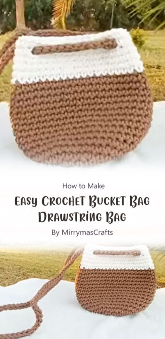2. Easy Crochet Bucket Bag – Drawstring Bag By MirrymasCrafts