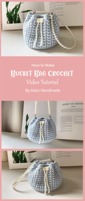 This elegant bucket bag features a soft pastel blue body paired with a dainty pearl handle, creating a refined yet playful accessory. The neat crochet stitches give it a beautifully crafted texture, while the white drawstring closure adds a charming contrast. Compact in size but big on style, it’s ideal for carrying your essentials to brunch, a day out, or even a special occasion. Ada’s Handmade offers a clear, beginner-friendly video tutorial, making it easy to create this delightful piece yourself.